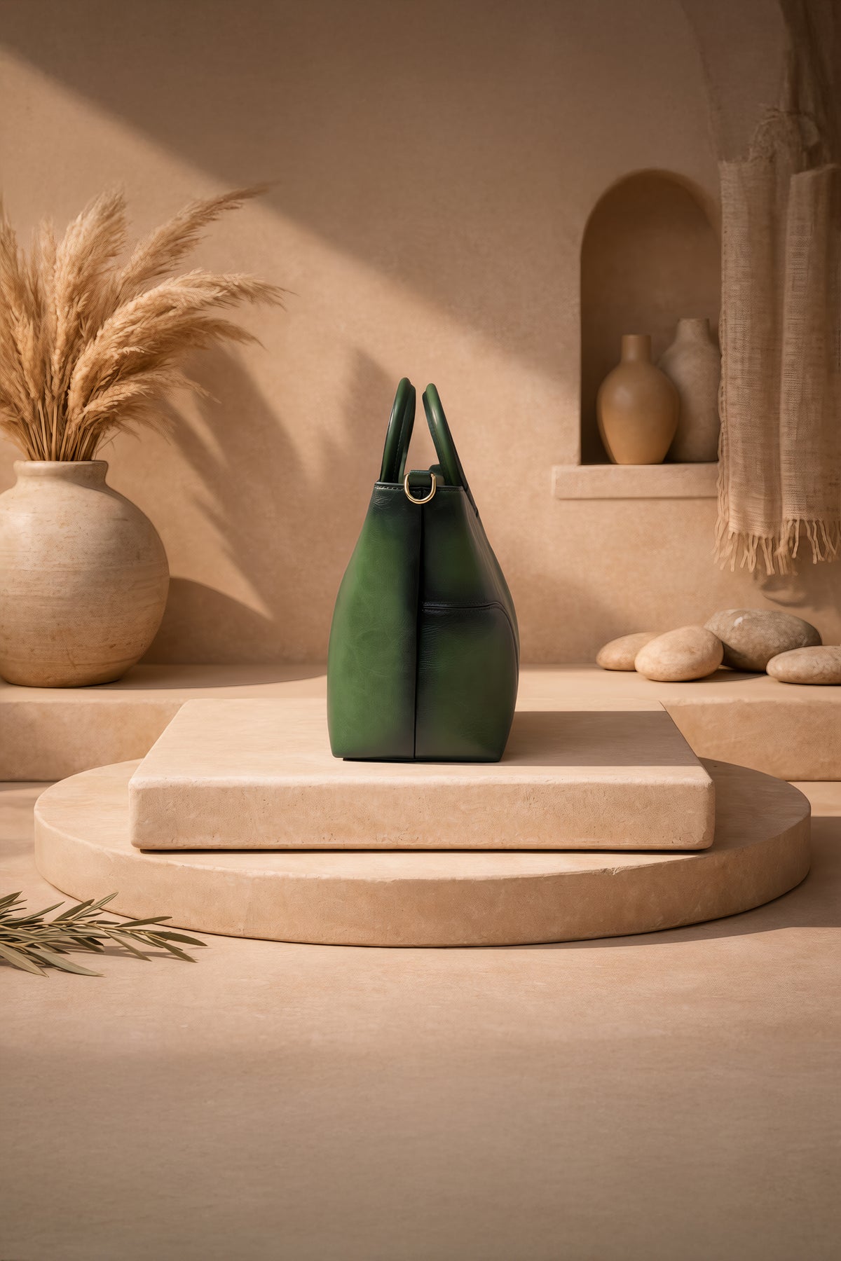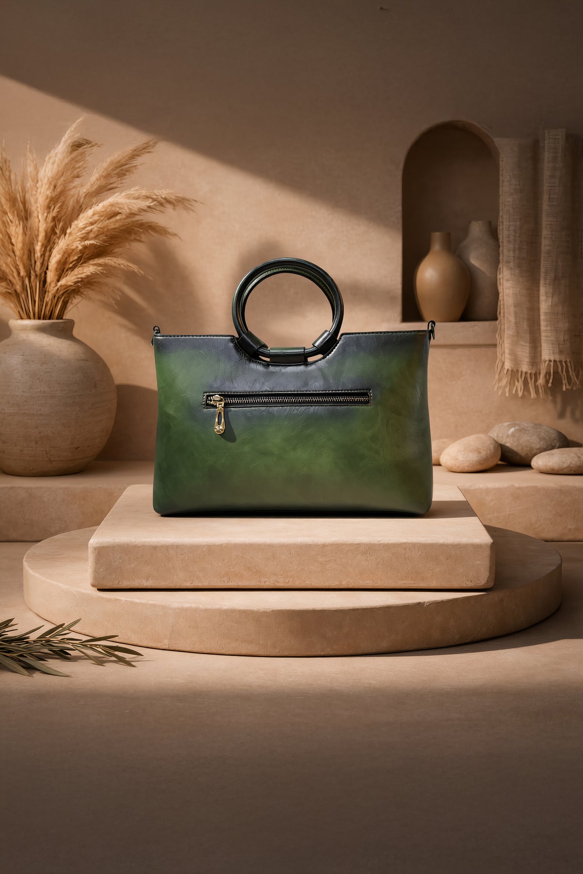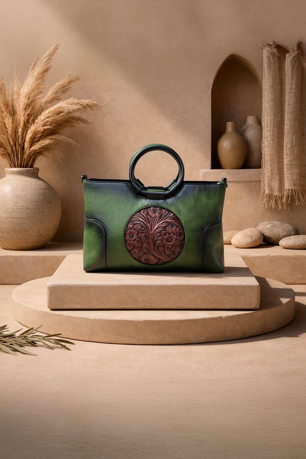 حقيبة يد نسائية أيقونية من الجلد الأصلي - أخضر عشبي